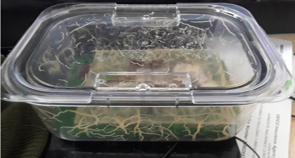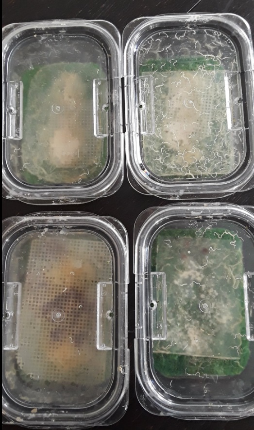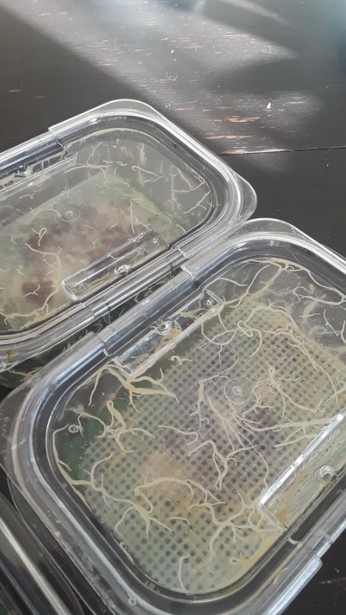 I just transferred some of my existing worms with a little bit of their coco coir into the new boxes that have no soil but sponges only. That was about 4 days ago. This morning I wake up to see what you see on the picture below.