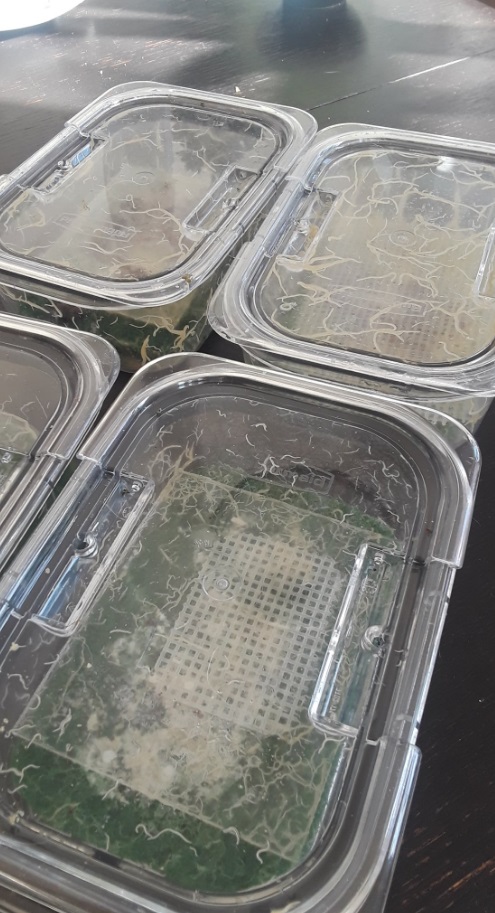 – Keeping the boxes going involves having different boxes in different development phases. Meaning when some boxes are about to crash you have others that are just now exploding with growth. So when you wash some of the sponges you have plenty of worms from the other boxes to seed them. That kind of management is not too complicated. And all the signs how a box is doing is clearly visible or smelled.